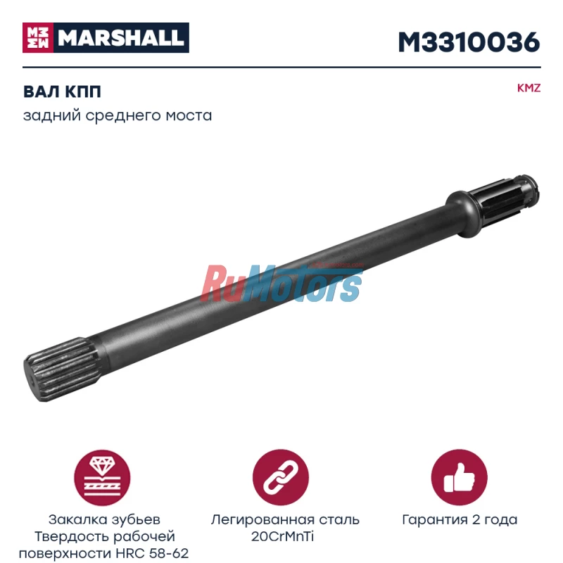 Вал KAMAZ 43118,53504,6450,65115 задний среднего моста (5320-2502201) MARSHALL M3310036 артикул M3310036 по цене #item_price в наличии на складе.
