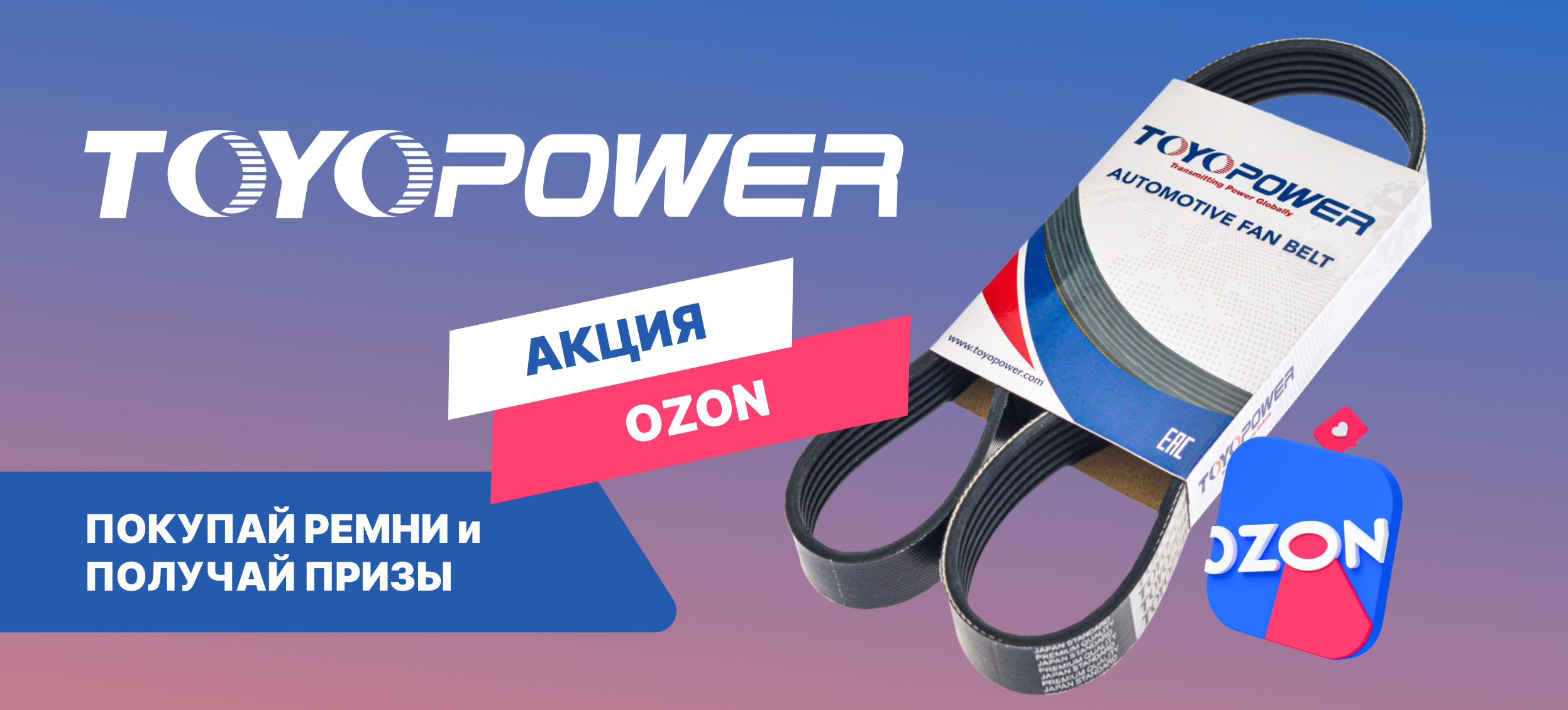 За каждые 17 000 р закупки ремней TOYOPOWER – сертификат OZON номиналом 500 рублей в подарок!